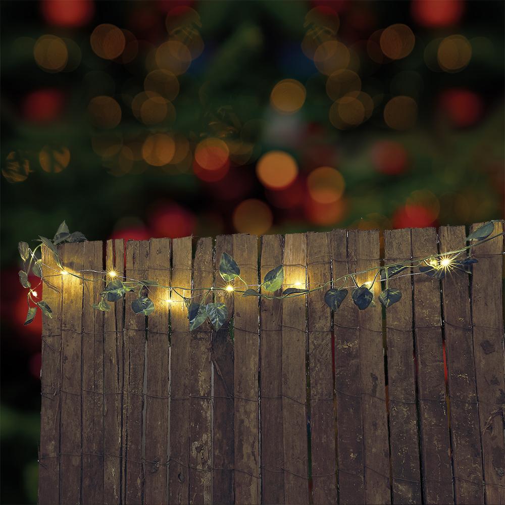 Bring a natural touch to your outdoor decor with this artificial leaf light garland made up of 50 warm white microLEDs.