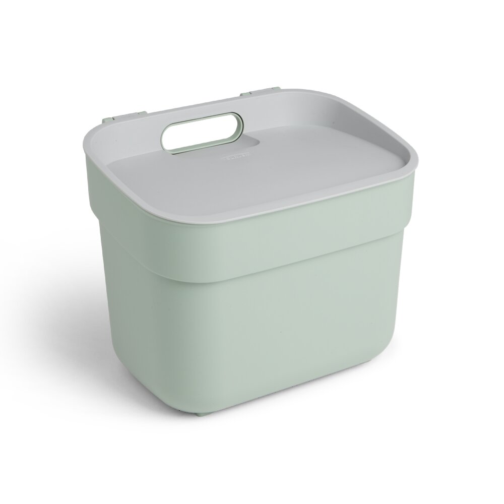 The compact size and 5-litre capacity of this green bin with a grey lid make it discreet and easy to keep within reach.