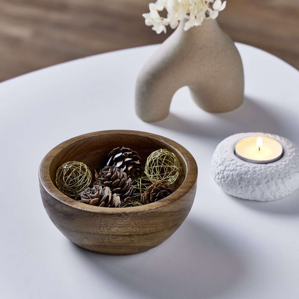 Embrace the raw beauty of wood with this acacia bowl. Whether used as a centerpiece for fruit or on an entryway console table to diffuse the scent of potpourri, it lends itself to many uses.
