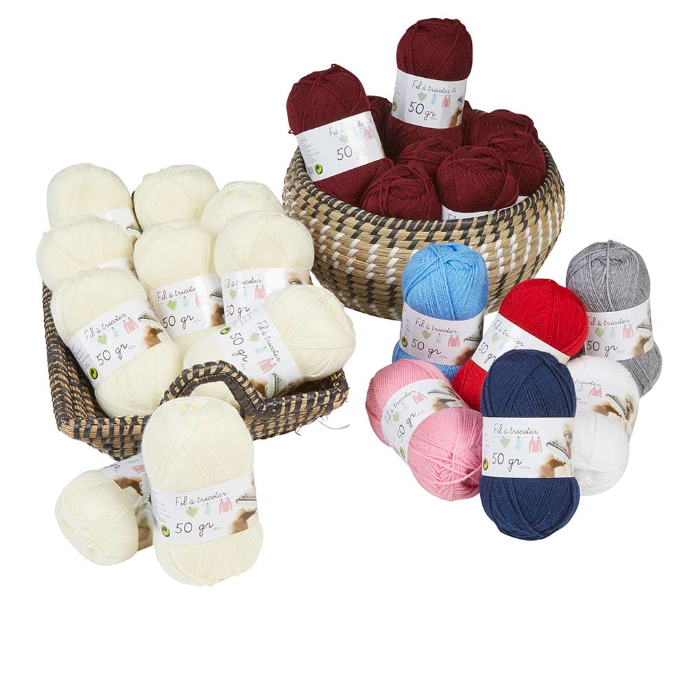 Pack of 10 balls of acrylic knitting yarn. Soft and durable, this yarn offers excellent value for money, is easy to care for and perfect for children's clothing. It will keep its shape even after multiple washes.