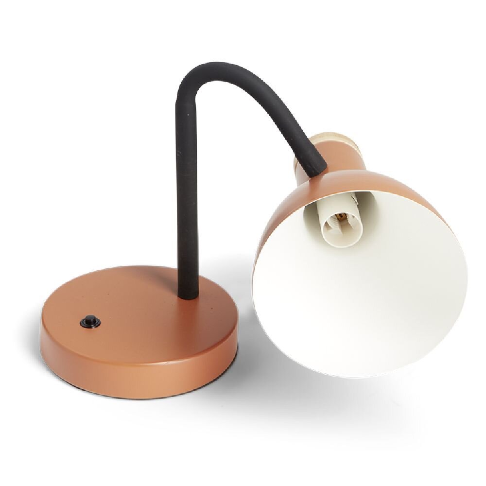 This orange metal and wood desk lamp is a stylish and functional lighting accessory, perfect for your workspace.