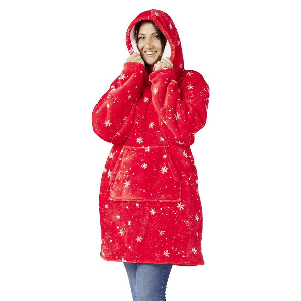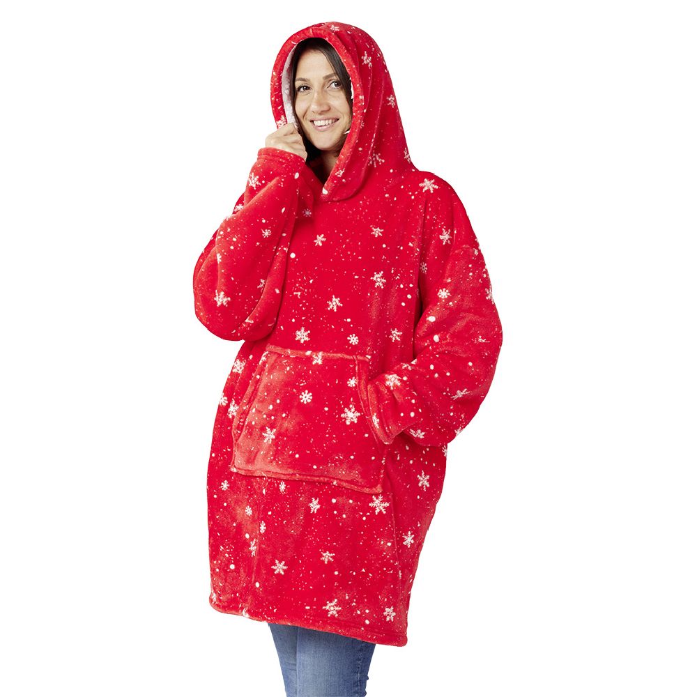 Slip into this red plaid sweater with a white snowflake pattern for all your cozy moments. Stylish and comfortable to wear, with its hood and large front pocket, it's ideal for keeping your hands warm and storing your phone, headphones, and other accessories.