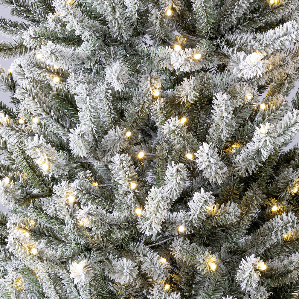 More realistic than life, this snowy, luminous fir tree with warm white lighting is ideal for creating a beautiful decor thanks to its height of 180 cm and its 930 branches.
