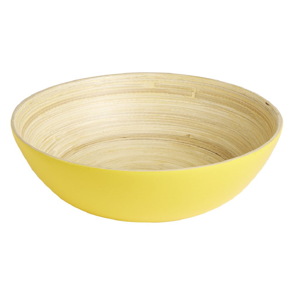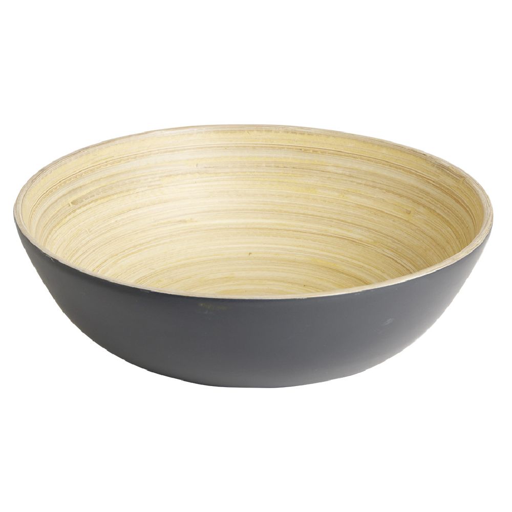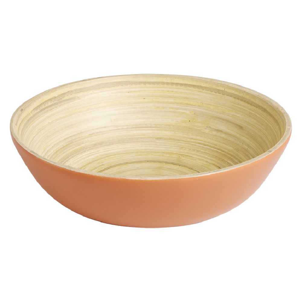100% bamboo bowl with a solid color on the outside and a natural color on the inside, ideal for adding a delicate touch of nature to your presentation.