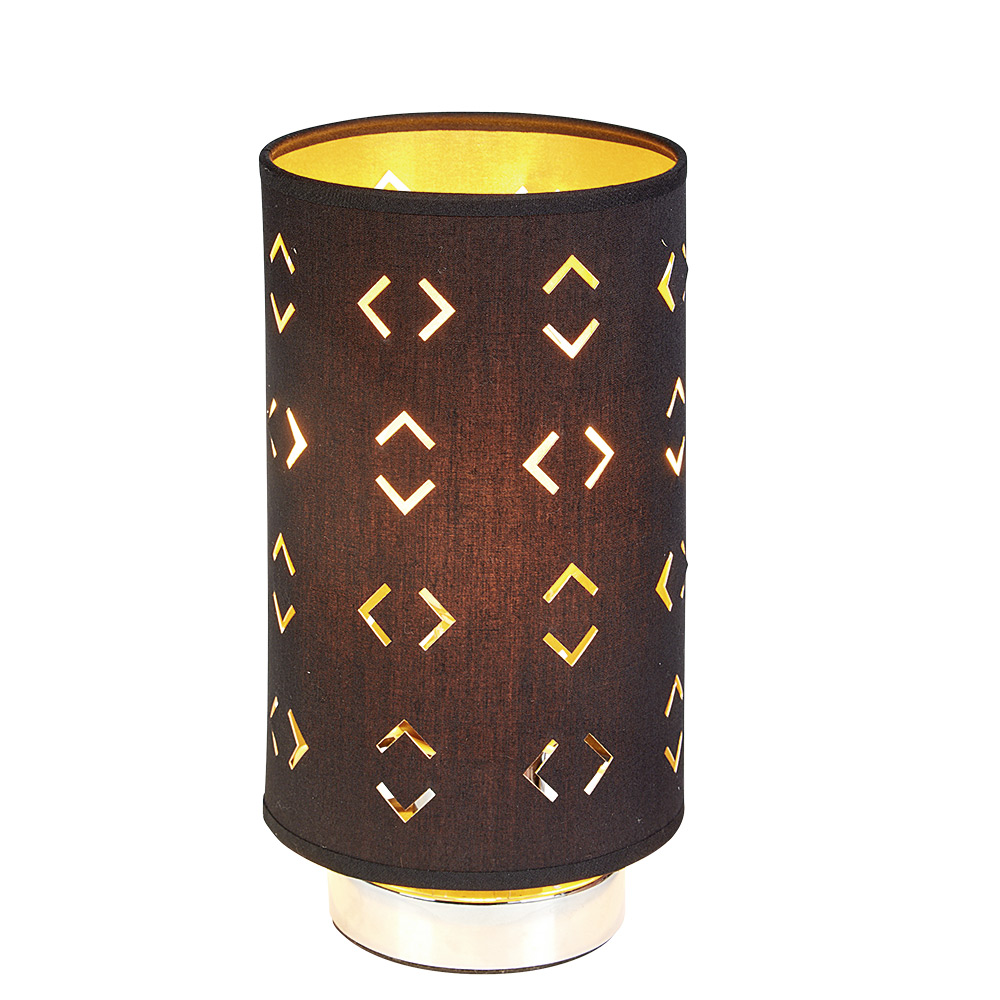 Opt for the modern and trendy style of this two-tone black and silver bedside lamp. Its black polyester shade is adorned with pretty openwork graphic patterns and topped with a round silver PVC base.