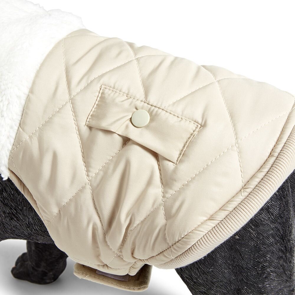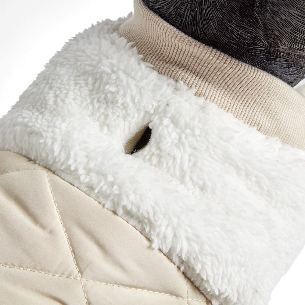 This XL size jacket in beige polyester with white sherpa top is suitable for large dogs.