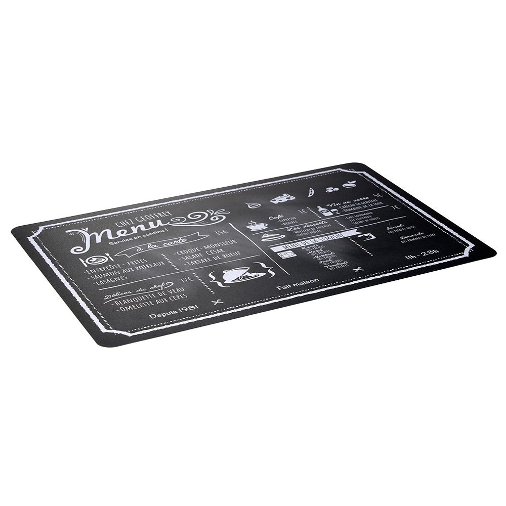 Go for bistro style with this black and white placemat with a printed menu.