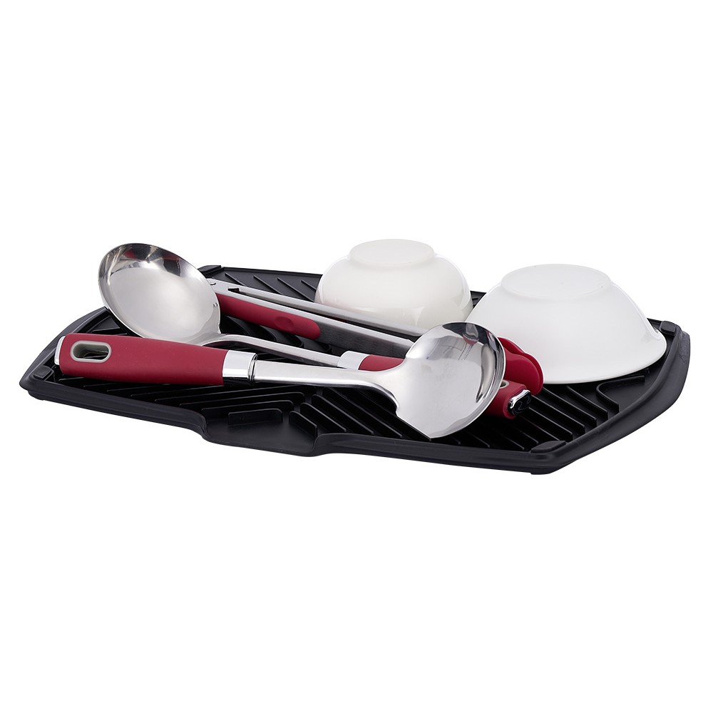 This practical, grooved mat in black polypropylene will be perfect for draining utensils, cups, glasses and bowls in the sink or elsewhere if it is already full.