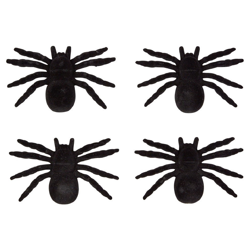 4 fake black plastic spiders, essential for a successful Halloween decoration!