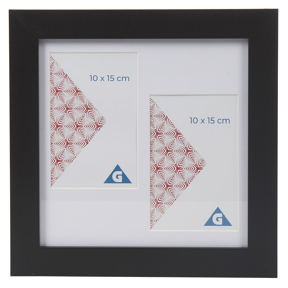 Black wooden collage frame for 2 photos measuring 10x15 cm.