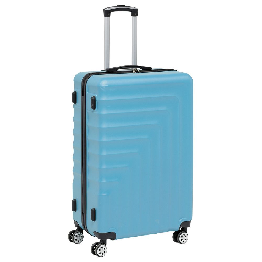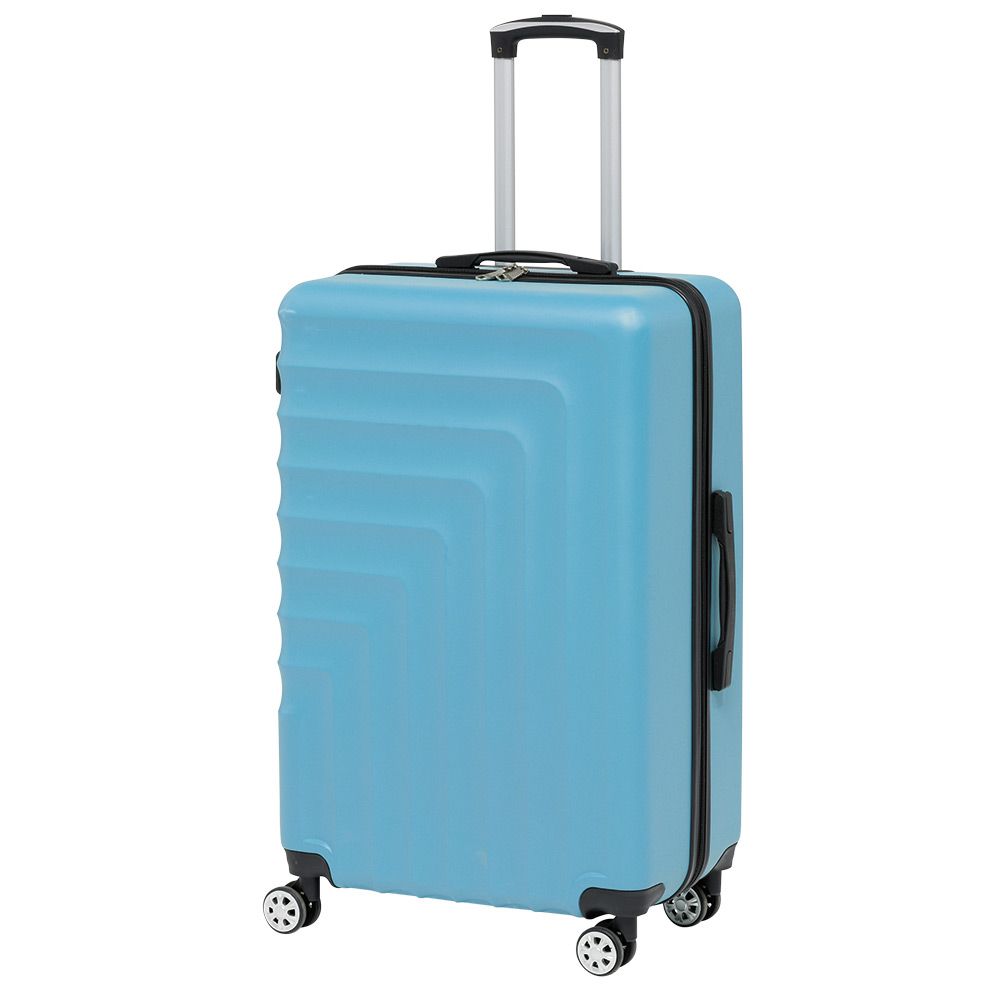 Large blue hard-shell cabin suitcase, ideal for storing your clothes and personal belongings while traveling.