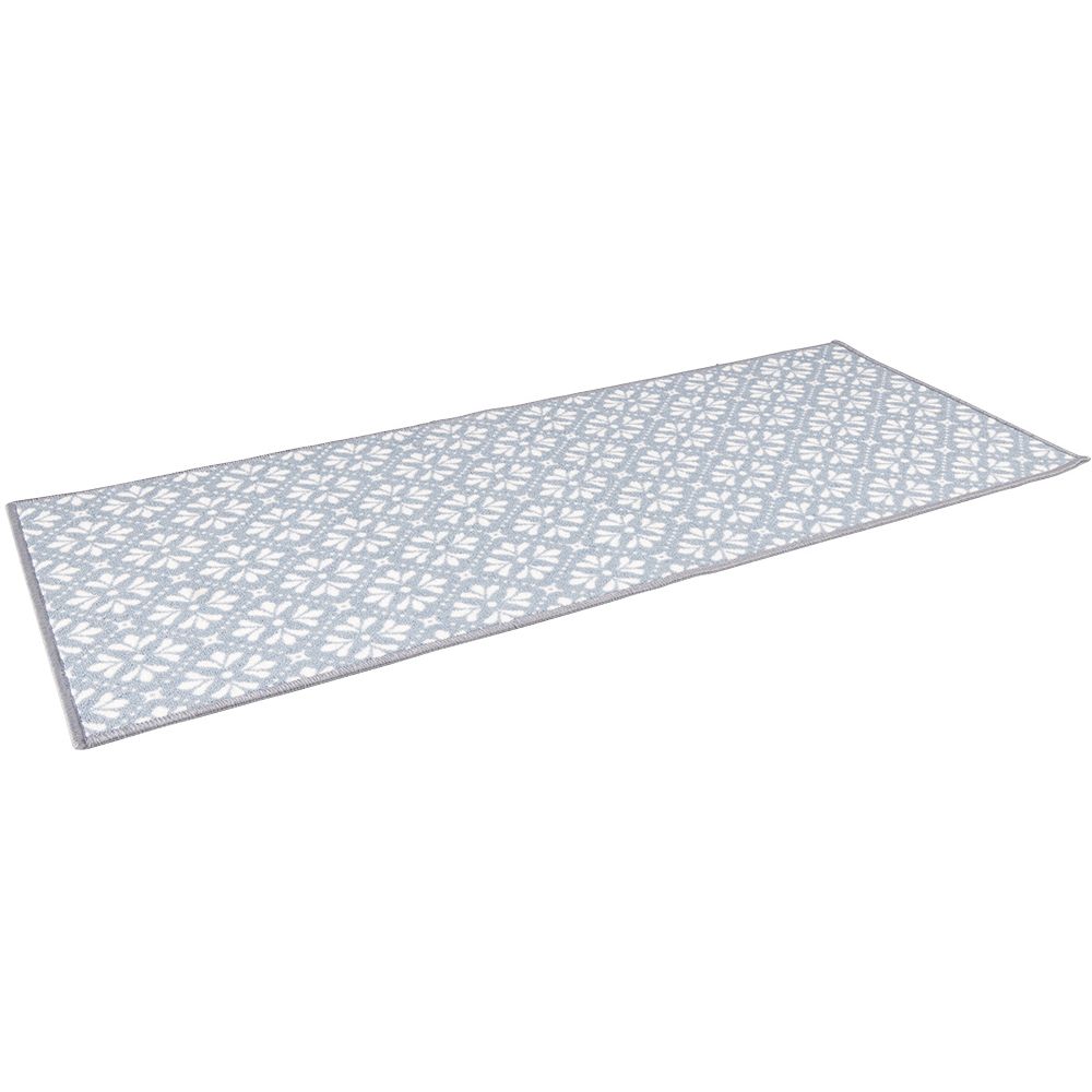 Practical and decorative, this blue cement tile print kitchen rug will add a touch of charm to your room's decor. Ideal for protecting floors from moisture and stains.