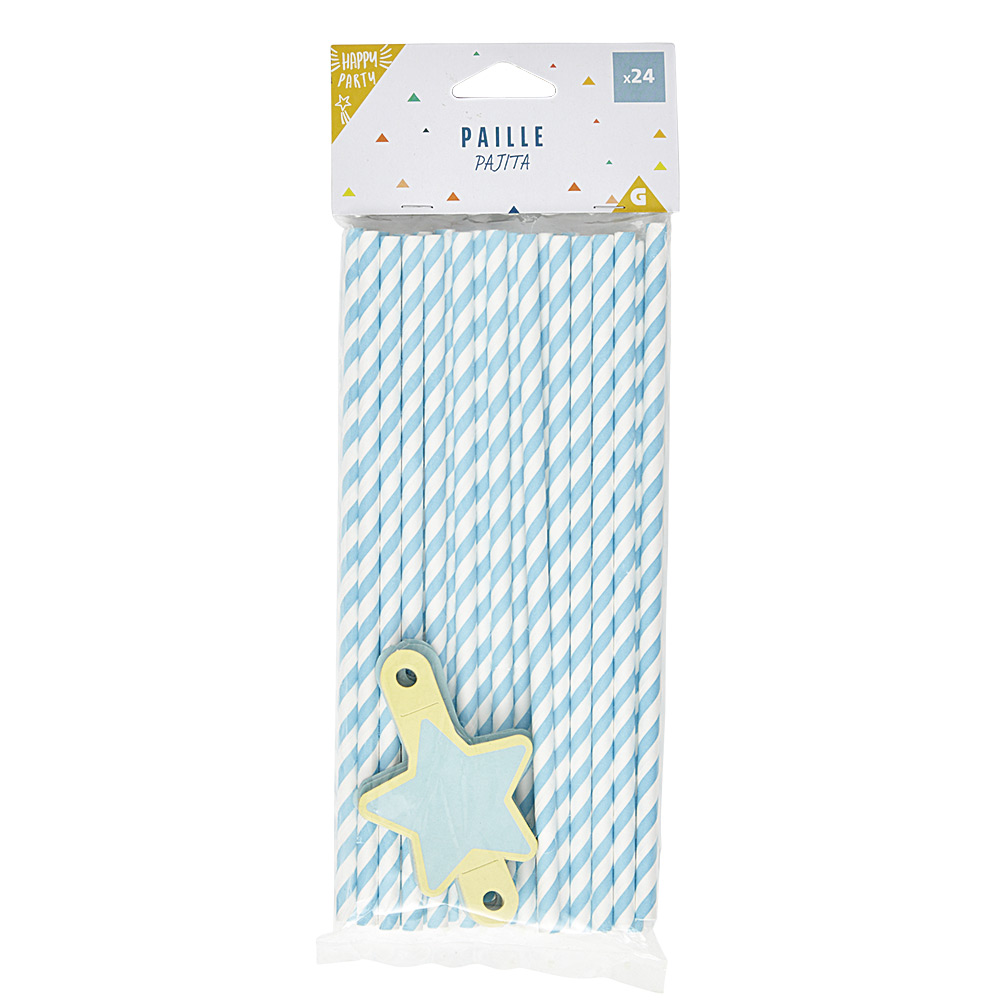 Never make a mistake taking your neighbor's drink again with these blue and white straws and their blue and yellow star-shaped labels.