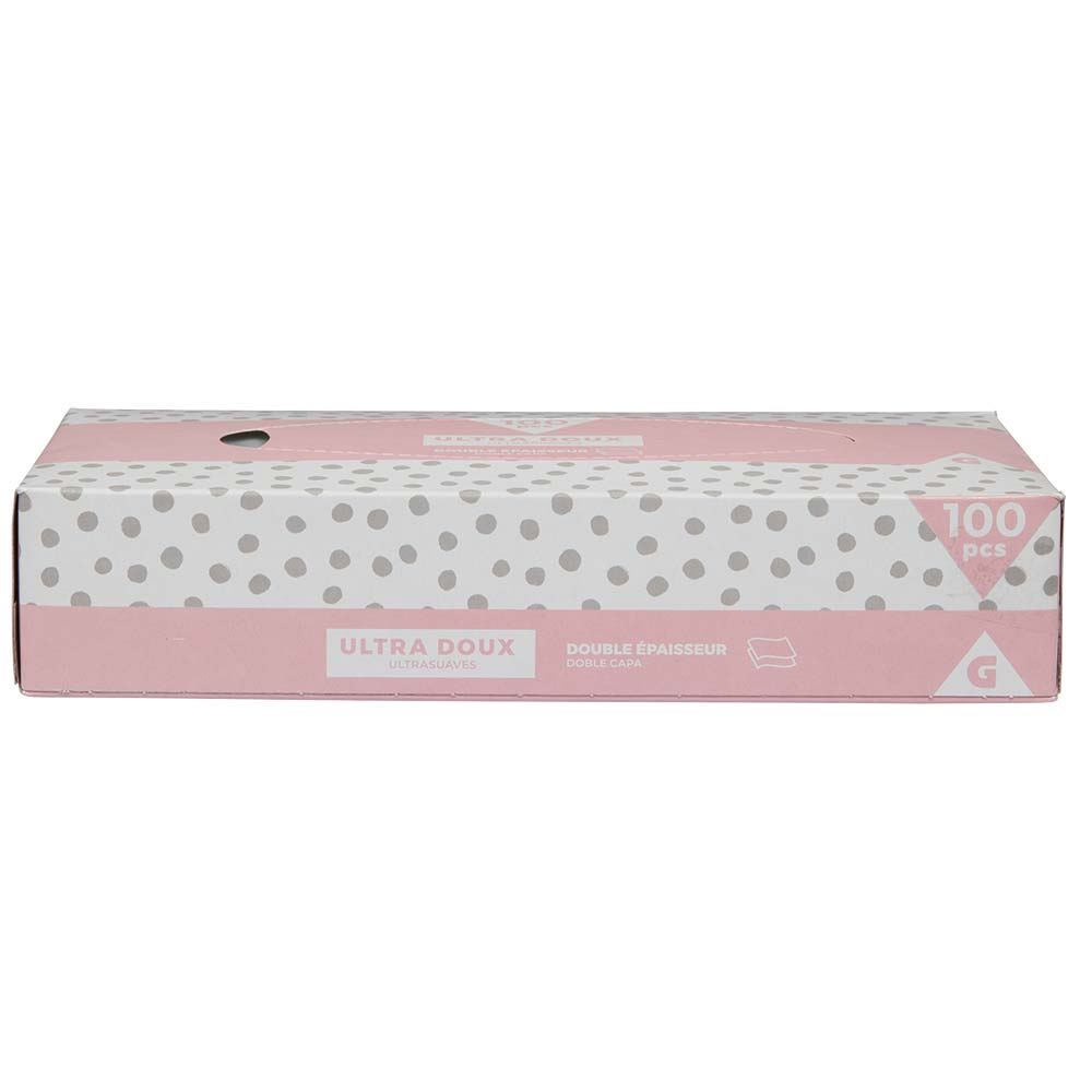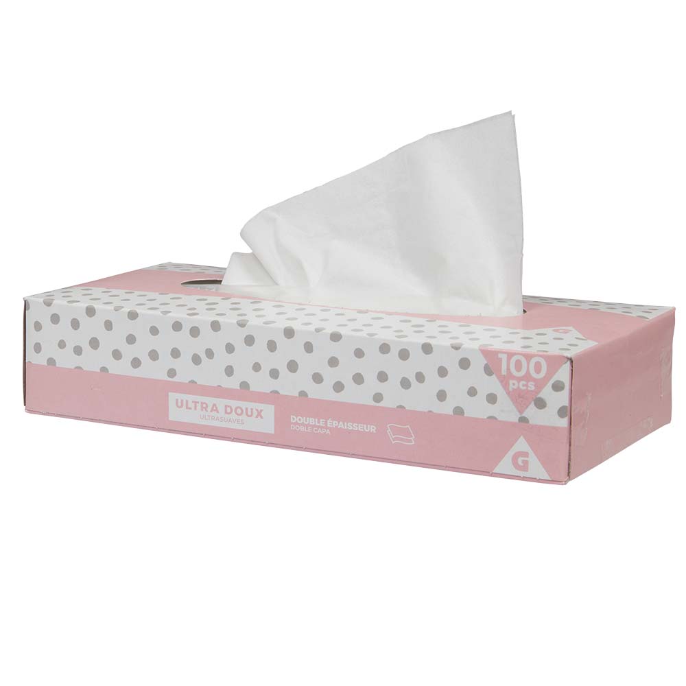 Box of 100 paper tissues, decorated with a polka dot pattern.