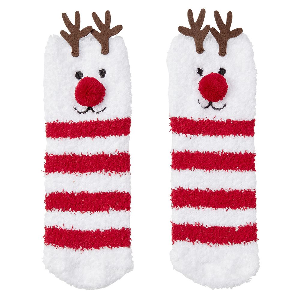 Let yourself be seduced by this pretty box with cuddly knit socks and its cute red and white striped reindeer pattern.