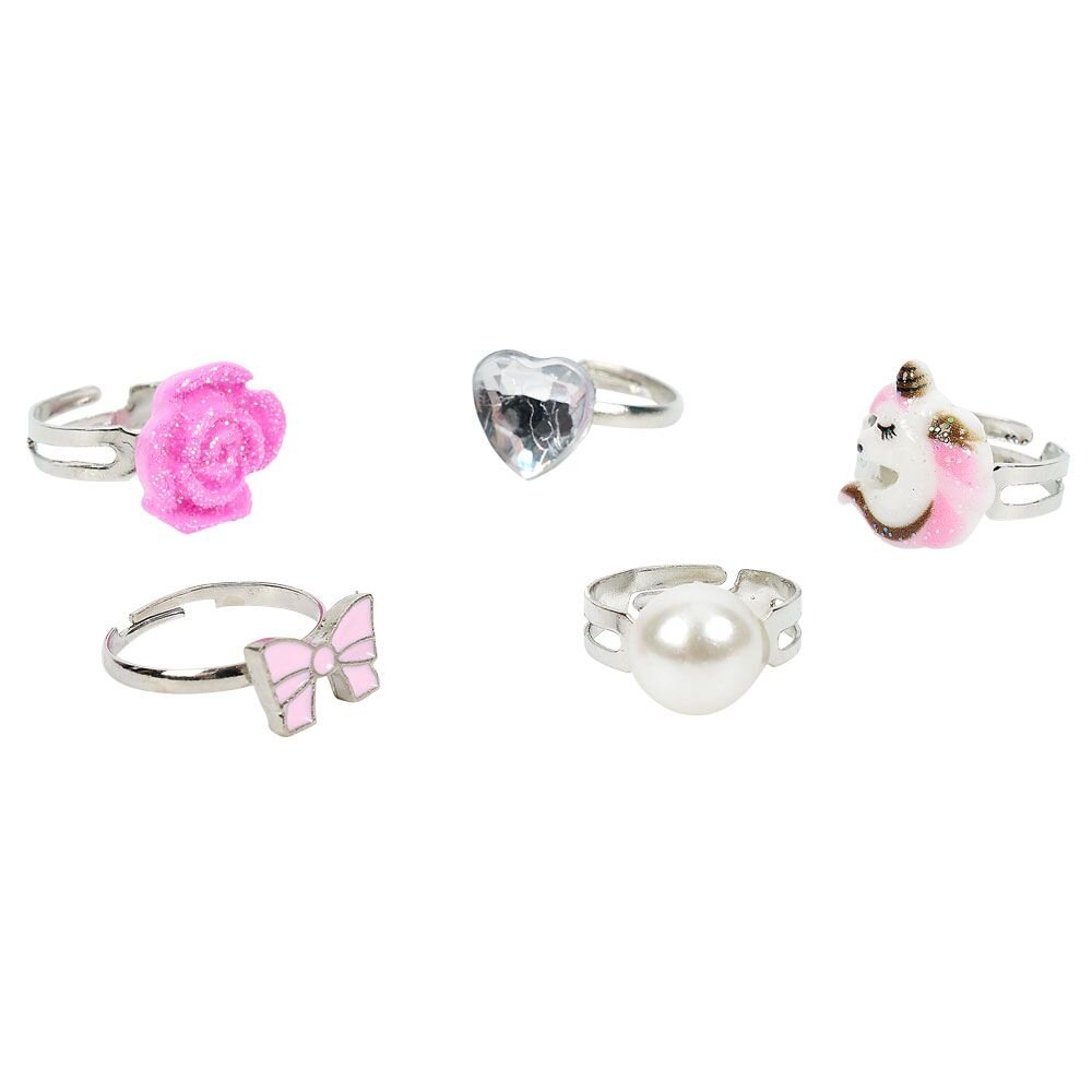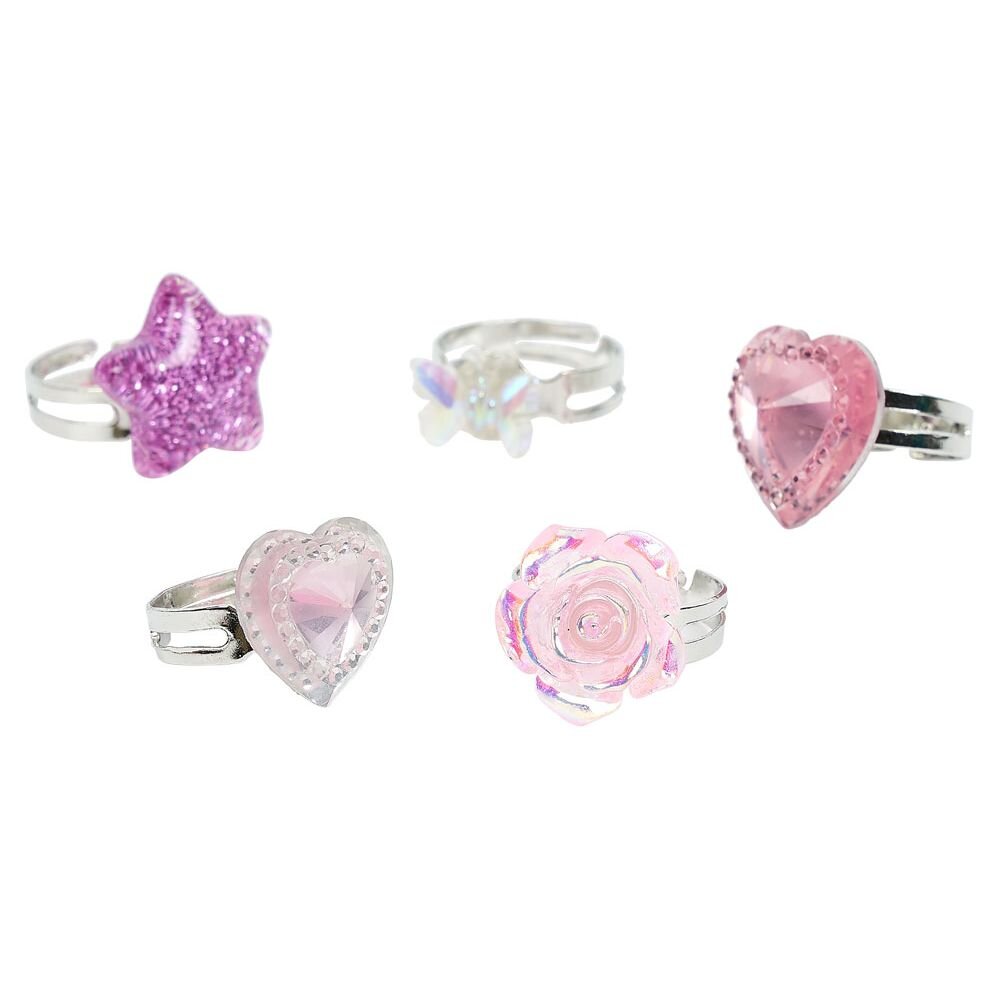 Inside you will find five adjustable metal rings, each adorned with unique fancy details.