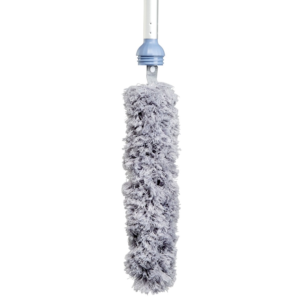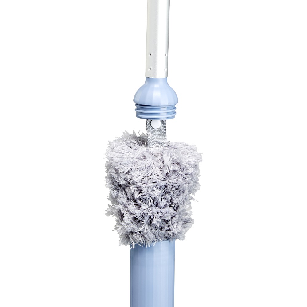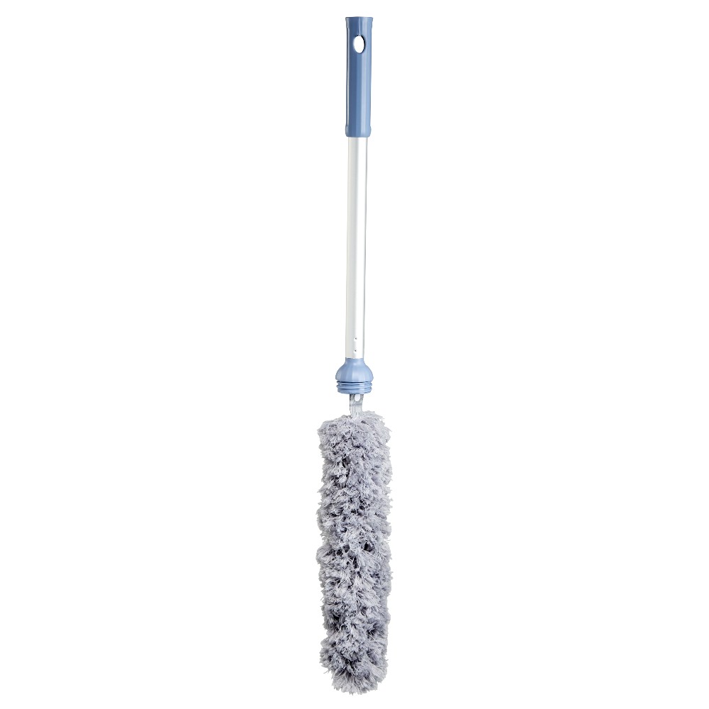 room with integrated feather duster in gray and blue handle