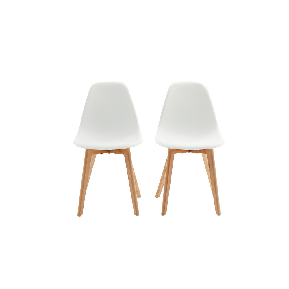 Complete your kitchen table or dining room with this set of 2 Chloé chairs with natural beech wood legs and white polypropylene seats.