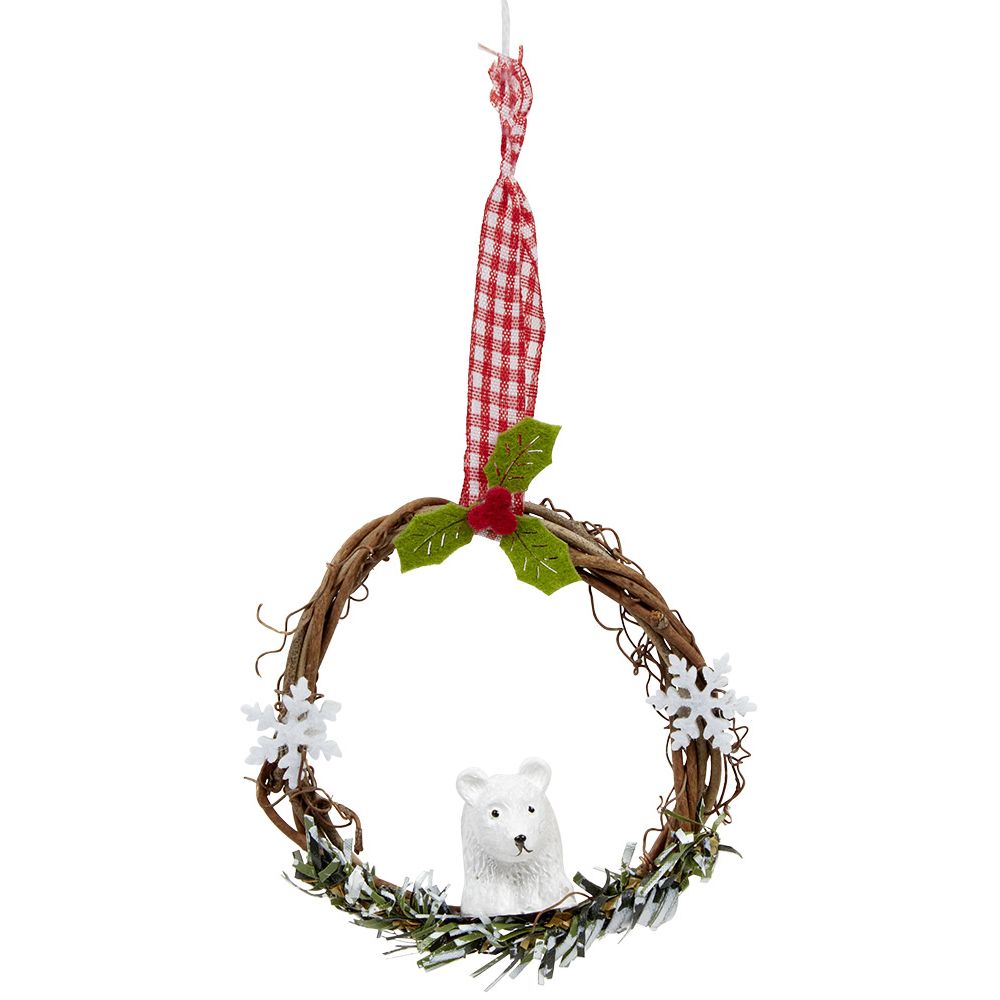 Small wooden wreath with a Santa Claus, a snowman, a teddy bear or a reindeer to hang on your door and anywhere in the house during the holidays.