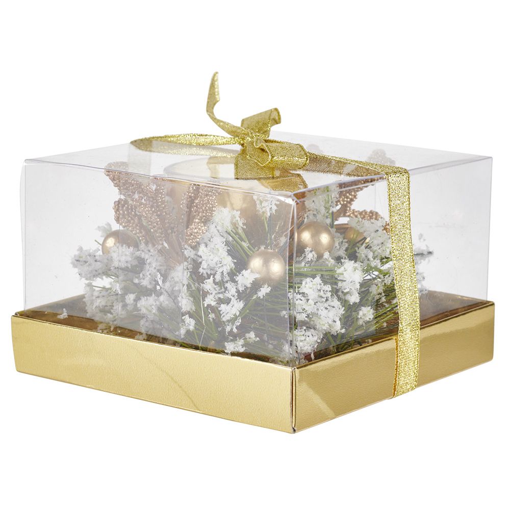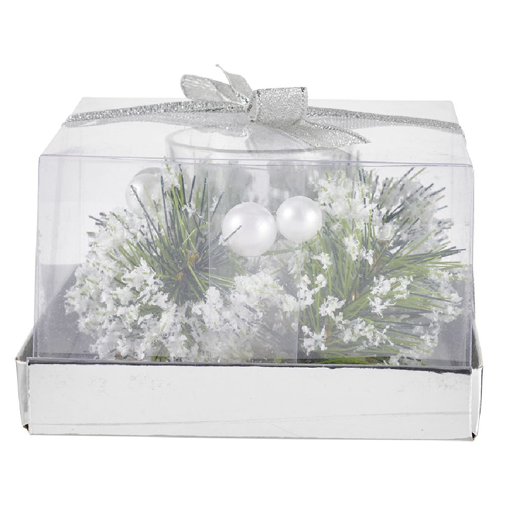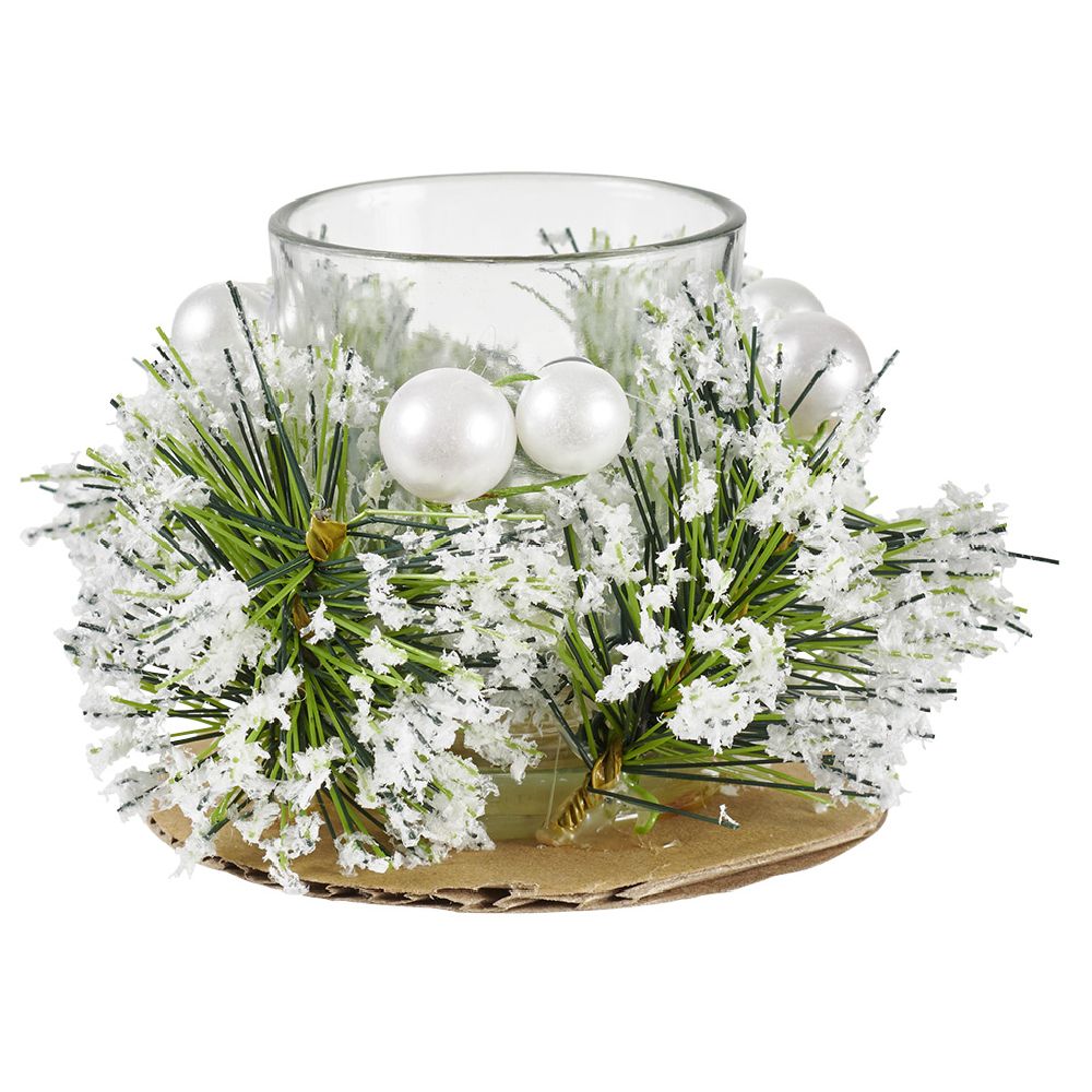 Tealight holder with red, white or gold balls to place at home to brighten up the Christmas holidays.