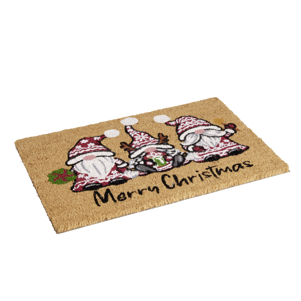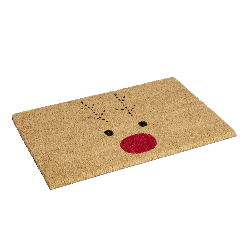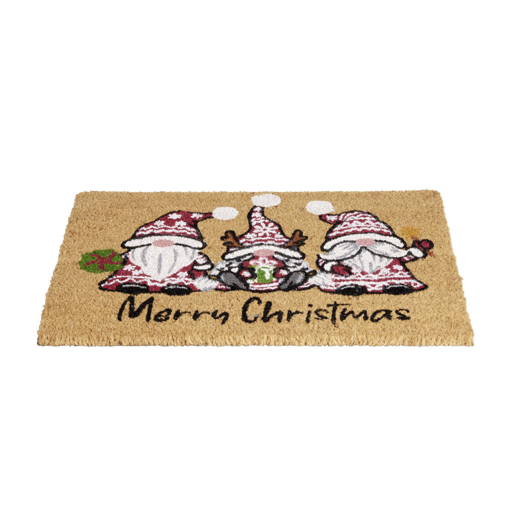 Add a warm ambiance to your entryway with this Christmas-themed coconut rug.