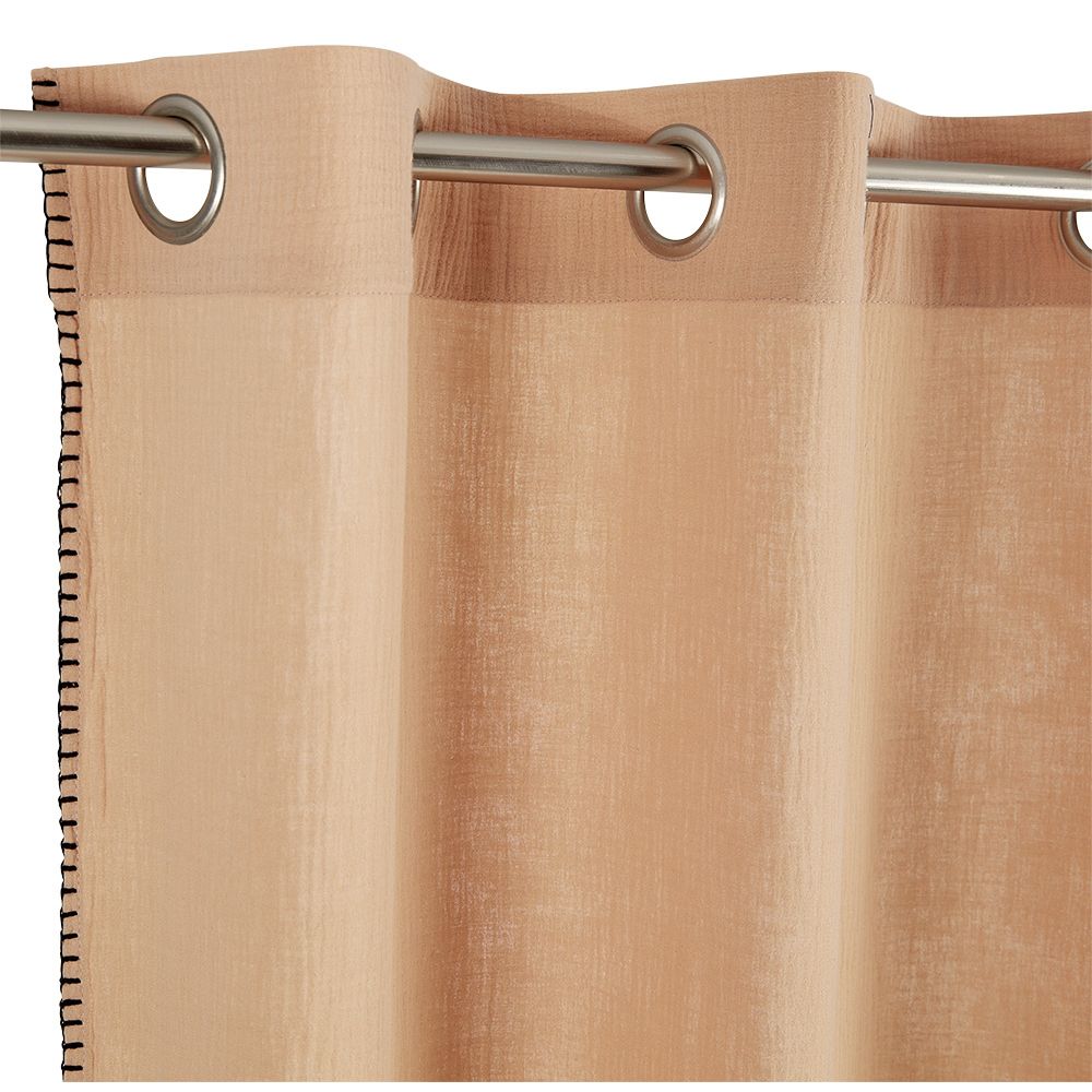 This salmon pink cotton gauze curtain with black borders is ideal for a cozy and trendy living room!