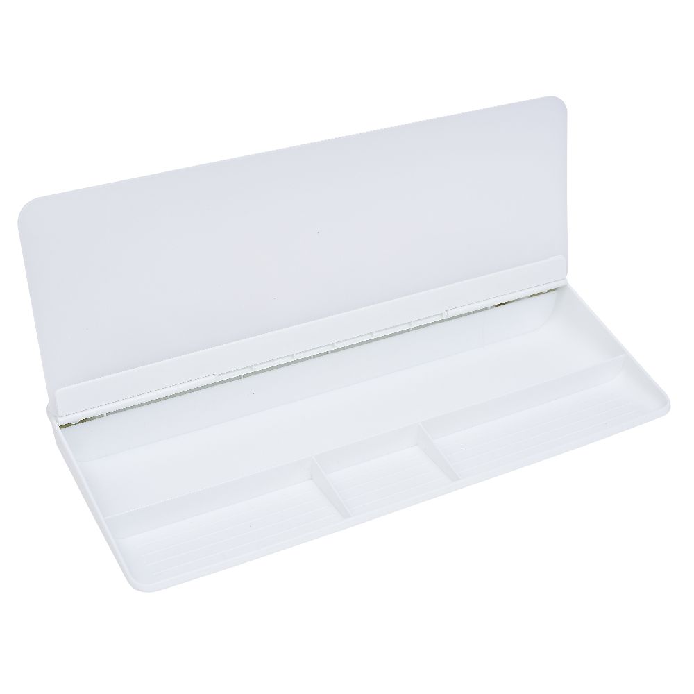 Desk organizer with board, phone holder, tablet and storage spaces.