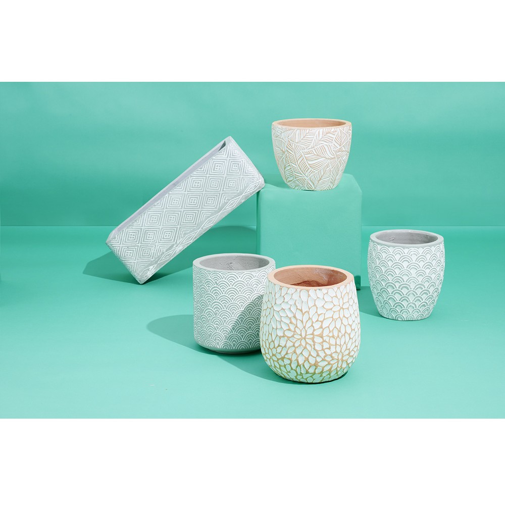 This beautiful cement planter will be perfect for adding a raw, natural style to your outdoor space. Its diamond-shaped patterns add a touch of class to its design.
