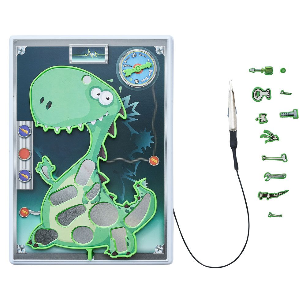 Operate the dinosaur by removing the pieces with the pliers without sounding the alarm to avoid losing the game!