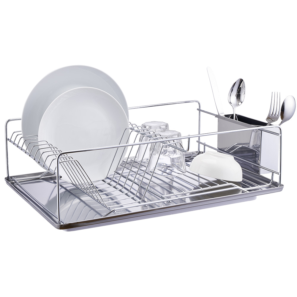 Dish drainer with cutlery holder and water collection tray in stainless steel for a beautiful and well-equipped kitchen!