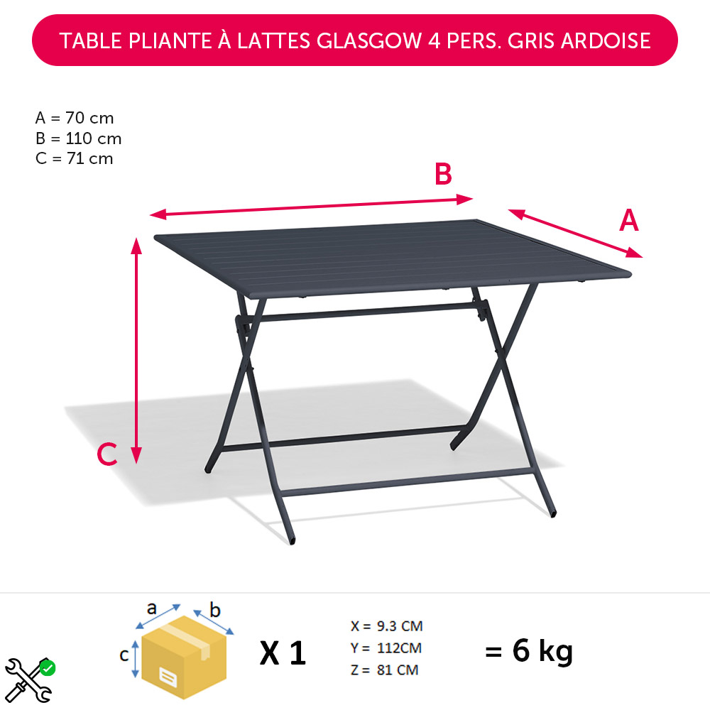 Choose this slate grey slatted folding table from the Glasgow collection to share a convivial meal on your terrace or in your garden. Both