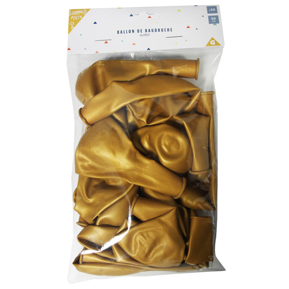 Set of 20 gold latex balloons to add a festive touch to your parties.