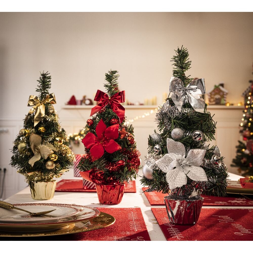 Your Christmas table will be perfectly finished with this miniature tree decorated with golden ornaments.