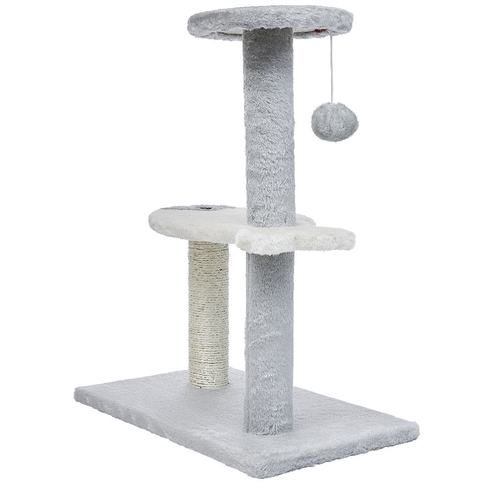 It features a fish-shaped platform, a play ball and a scratching post.