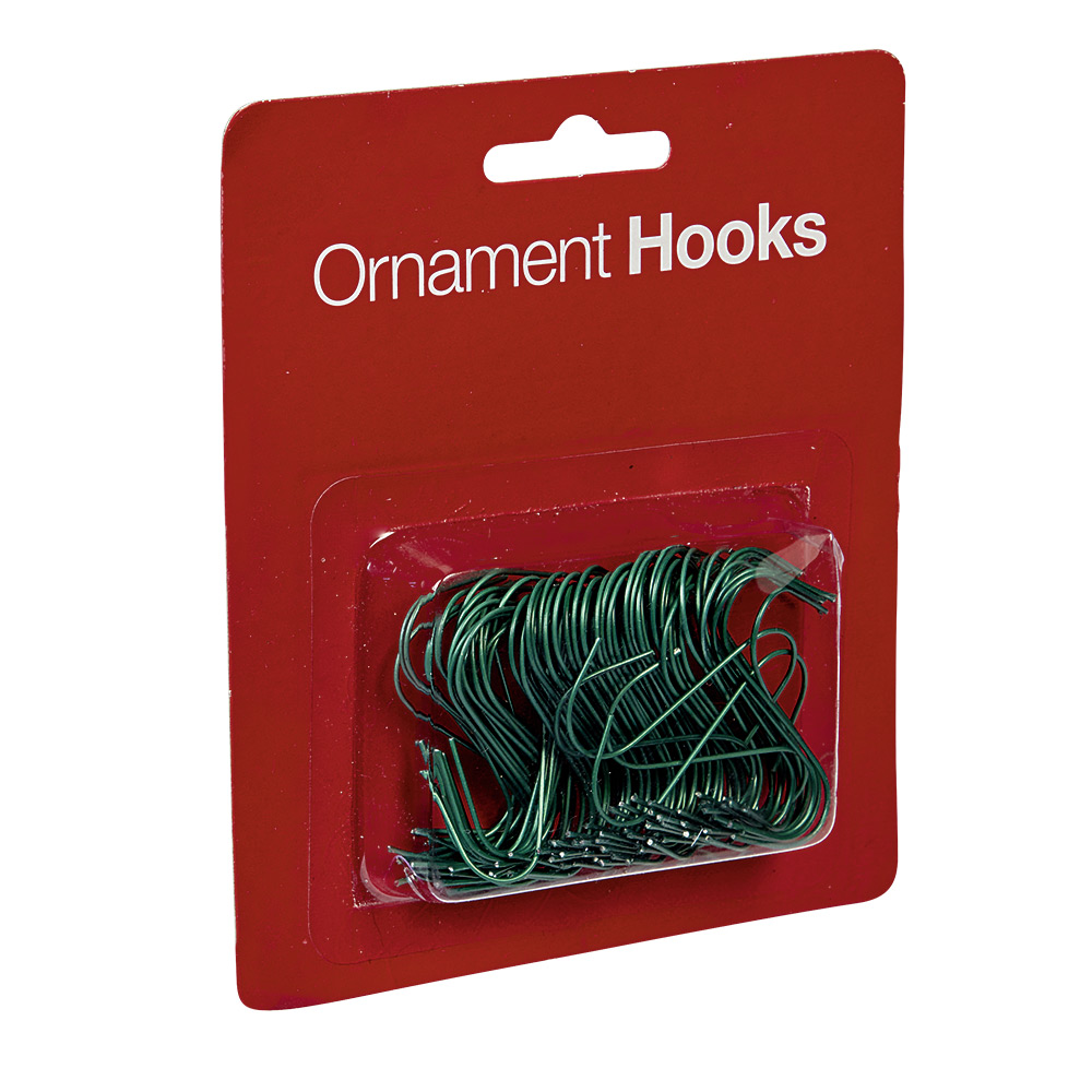 Pack of 100 green metal hooks. Ideal for hanging your decorations.