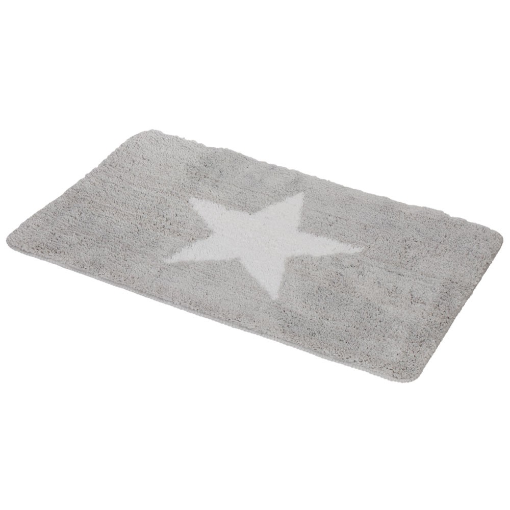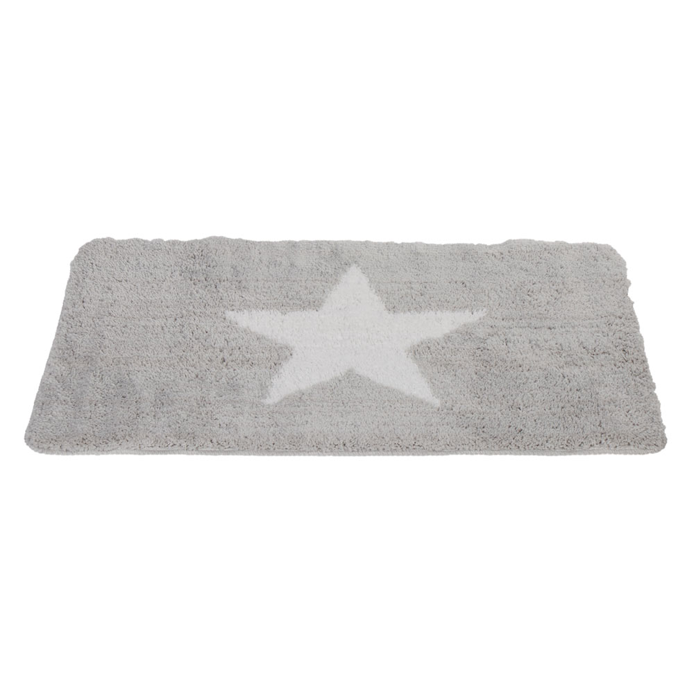Grey microfiber bathroom rug with star print. Choose this soft, non-slip decorative rug, a must-have for your bathroom!