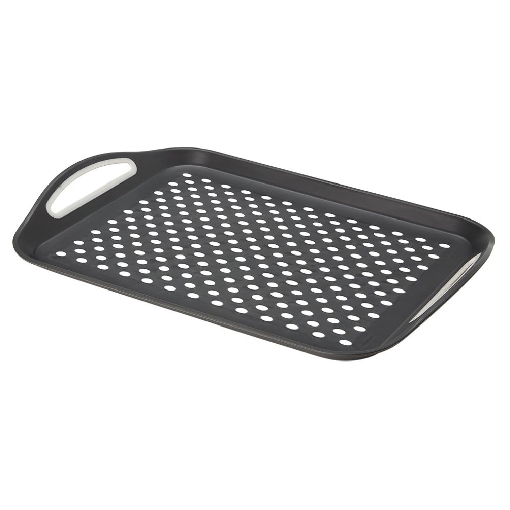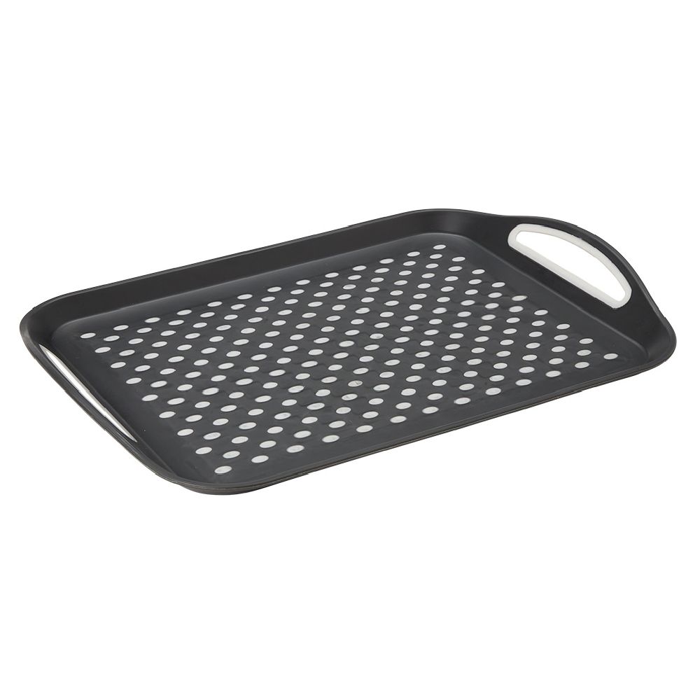 Grey non-slip tray with white polka dots, perfect for serving or enjoying breakfast in bed without the risk of spilling anything.