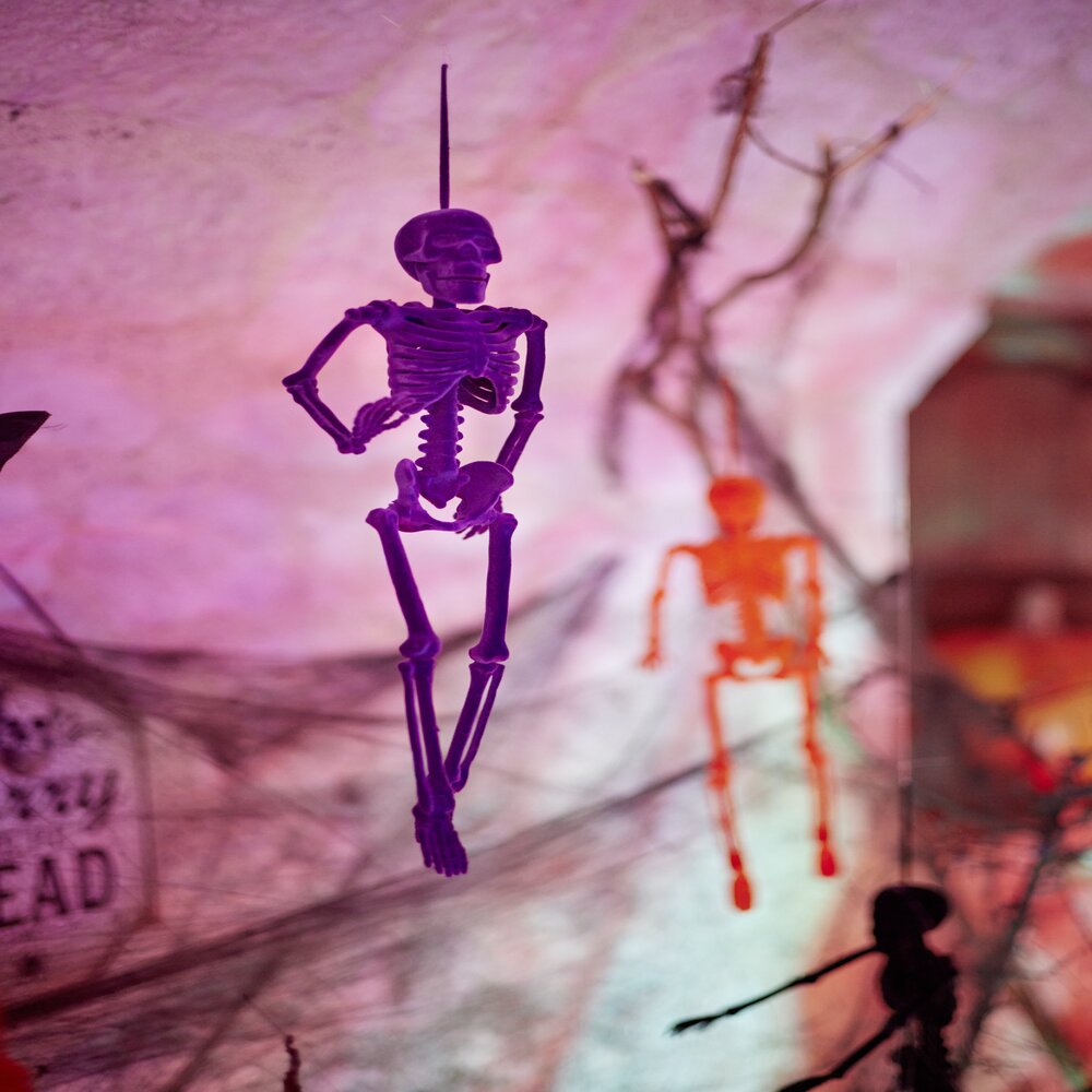 Add a spooky touch to your Halloween decor with this easy-to-hang skeleton!