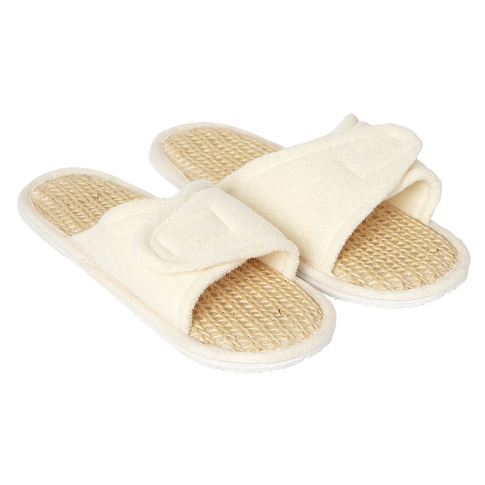 These white and beige linen slippers will be perfect for getting out of the bath or spa.
