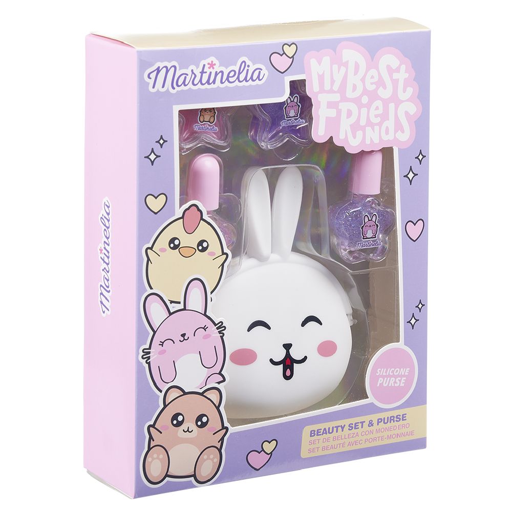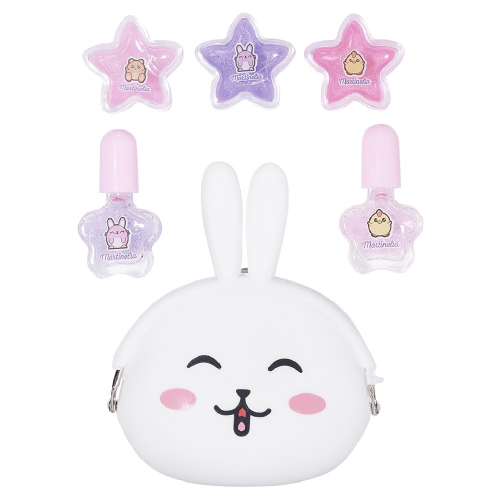 Martinelia My Best Friends beauty set consisting of 3 lip balms, 2 nail polishes and 1 cute white silicone rabbit-shaped purse.