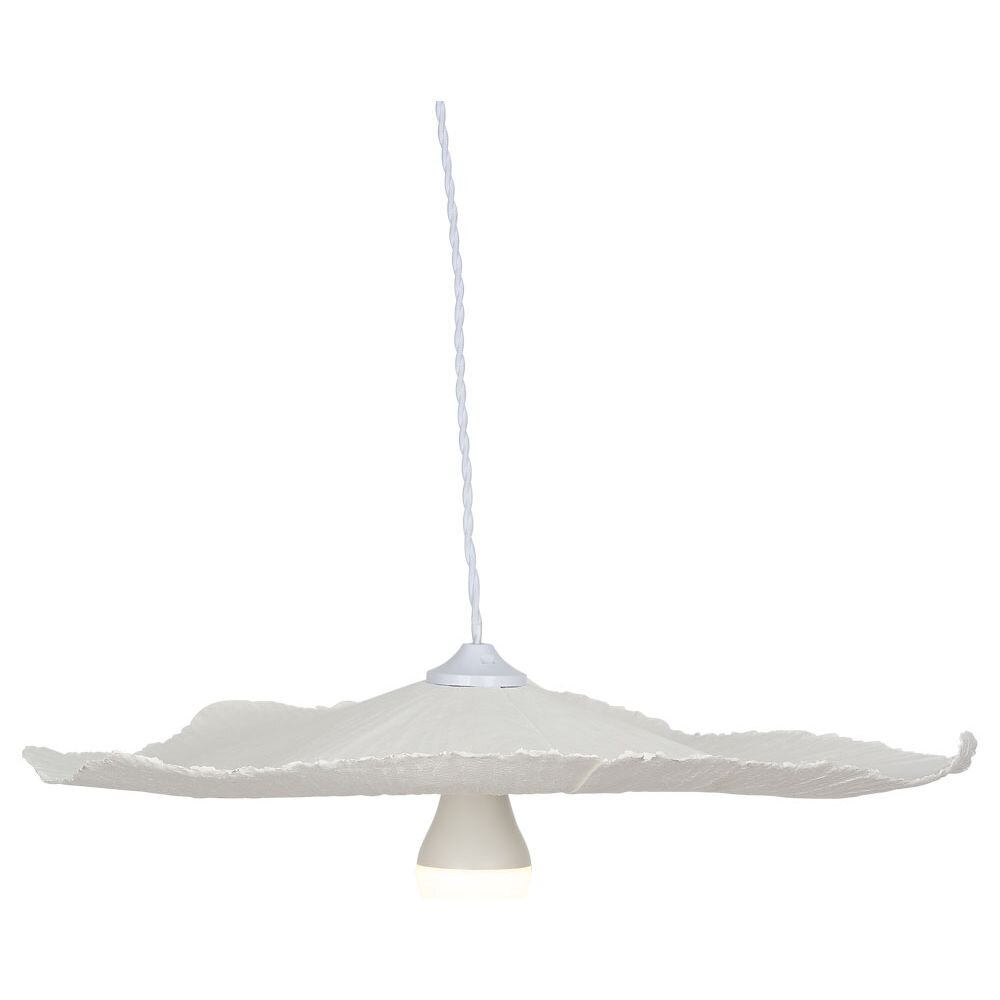 Measuring 60 cm long, 53 cm wide and 120 cm high, this artistic pendant light is crafted from papier-mâché and iron, offering a harmonious marriage of materials.