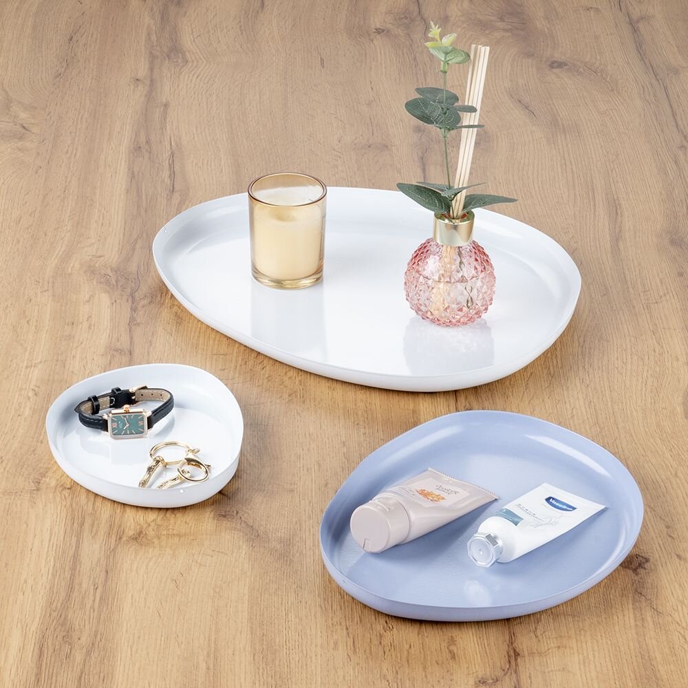 Set of 3 blue and white iron storage bins, a modern and practical solution for organizing your small items.